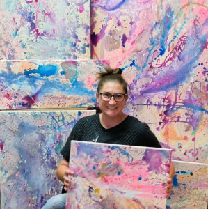 Her passion for gestural and action painting techniques illuminates her vibrant and introspective works, offering insights into mood, emotion, and the intricate tapestry of life. In an uncertain world, Ang finds hope and meaning in every piece she creates, weaving together her personal journey, mental health struggles, and experiences as a psychologist, Mother, wife and creative. Her profound insights into the human psyche, coupled with her commitment to community and shared knowledge, resonate deeply with audiences, inspiring courage, wisdom, and hope.