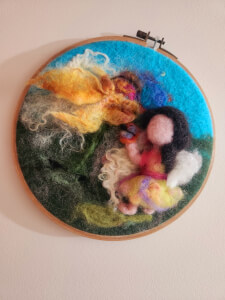 The journey into art and wool painting started at the craft group of the Waldorf school her daughter was attending.